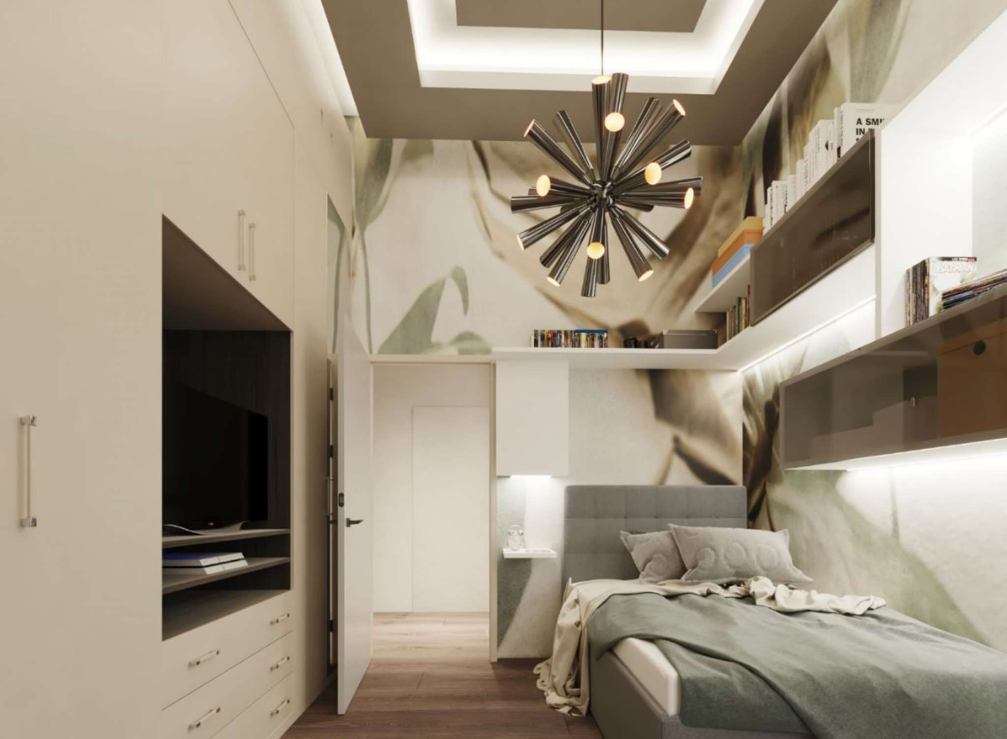 Il disimpegno condurrà alla zona notte con camera da letto matrimoniale, ben attrezzabile con spazio dedicato a cabina armadio, una camera singola ed un bagno di servizio dedicato, con piatto doccia ed infine un ulteriore camera da letto matrimoniale con cabina armadio.