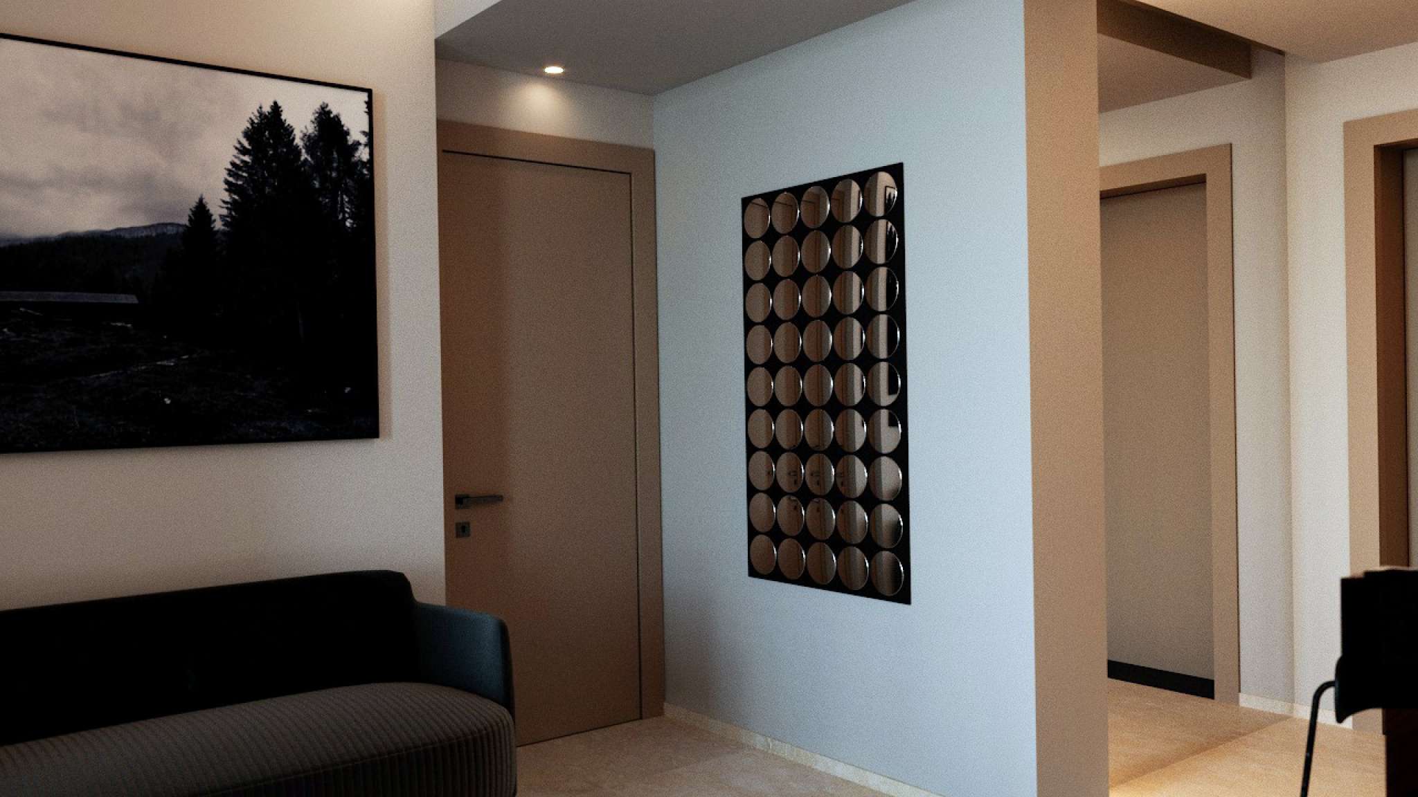 -Appartamento 17 - Un accogliente bilocale, organizzato con ingresso diretto sulla zona giorno, ambiente open-space, ove sarà possibile studiare comodamente gli spazi della zona living ed angolo dedicato a zona pranzo oltre alla cucina separata. La porta finestra, nel soggiorno, collega direttamente al balcone esterno.