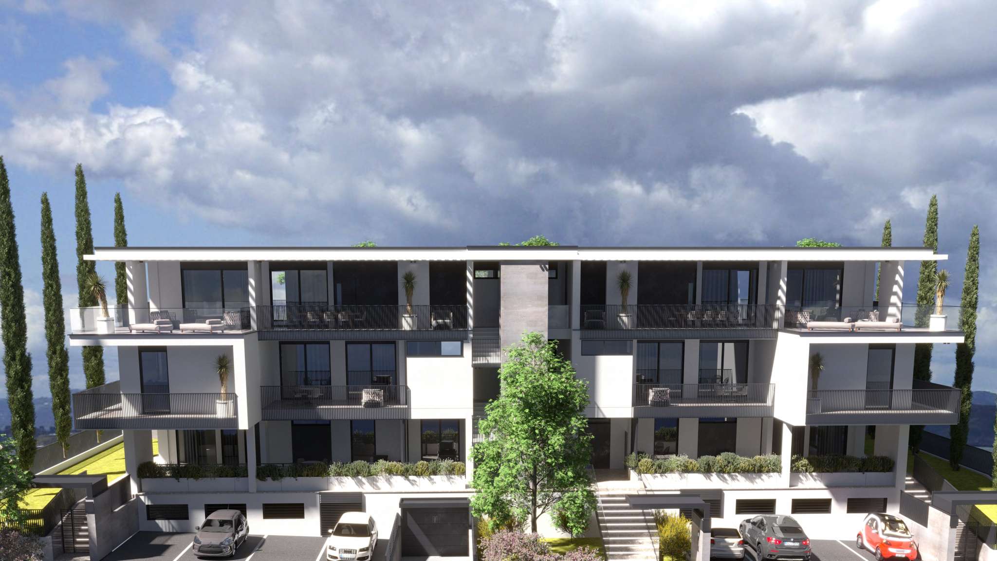 Le tre soluzioni al piano primo hanno accesso diretto a terrazzi loggiati e balconi panoramici.